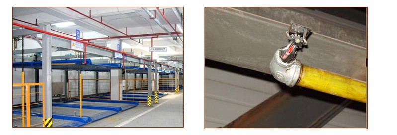 火灾自动喷水灭火系统是属于整个建筑的子系统。在发生火灾事件时,机械式立体车库可以利用每个车位的喷淋系统来达到灭火的效果。